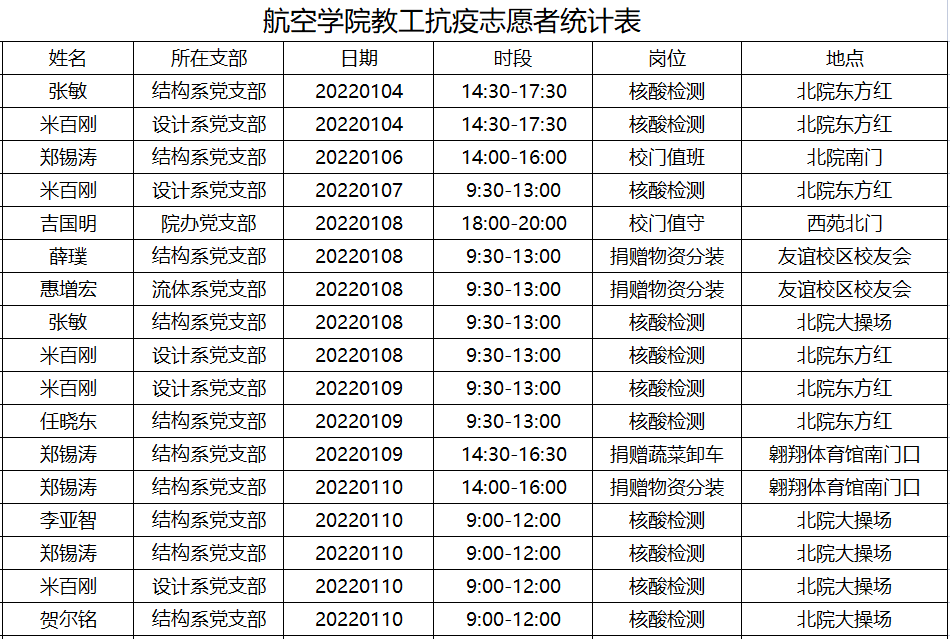 以上为部分教职工志愿者统计