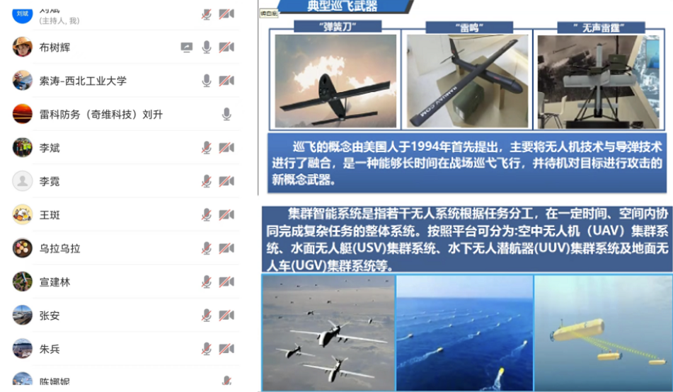 刘升详细介绍了雷科防务的发展历程、发展理念及人才需求等,并介绍了“巡飞与集群智能系统”的背景、国内外发展、技术发展方向及技术需求。他表示雷科防务非常期待与优势互补,共同携手服务国家发展需求。