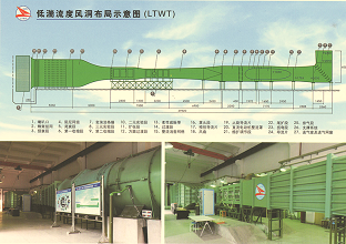 低湍流度风洞(Low turbulence wind tunnel,简称LTWT风洞)是一座先进的低速、低噪声、低湍流度研究型风洞。LTWT风洞具有串列的三元实验段和二元实验段,截面比约为3:1。风洞的收缩段采用两次收缩,第一收缩段的收缩比为7.11,第二级收缩段的收缩比为3.18,总收缩比为22.6,在两收缩段之间,可安装变湍流度的格栅,以改变试验段的湍流度。