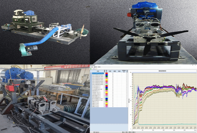 该试验台能测试各类旋翼/螺旋桨系统的悬停特性、动平衡特性和拉力功率特性等,测量参数包括六分量力、扭矩、转速、功率、效率等;