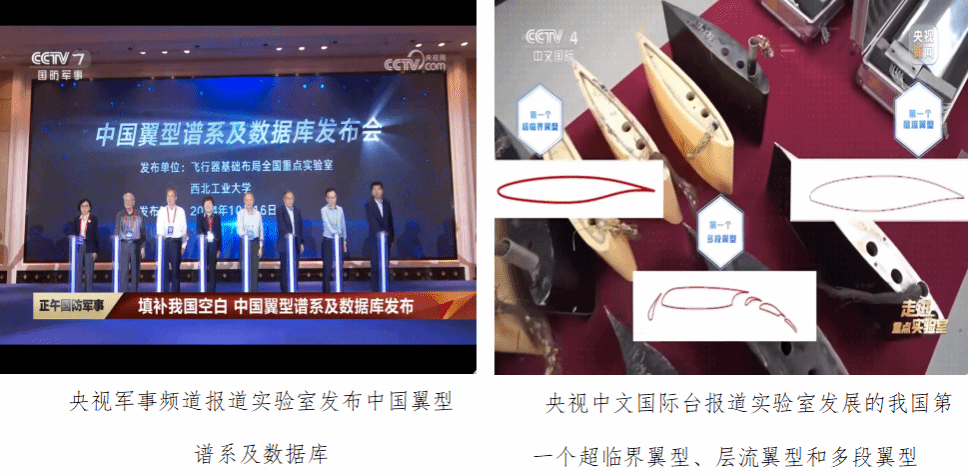 30多年来,实验室始终伴随并支撑着同时期国家重大飞行器型号发展,开创了基础布局研究的多个第一。建立并发布第一个中国翼型谱系及数据库,发展出我国第一个超临界翼型、层流翼型和多段翼型等;突破“抬式/鸭式布局”“双三角翼布局”“超临界机翼布局”“翼身融合布局”“仿生扑翼布局”等布局原理,创造中国航空史多个第一。实验室的创新研究、型号贡献和人才培养等一批高水平成果,多次受到央视新闻联播以及央视中文国际频道、军事频道和科教频道等节目和媒体报道。