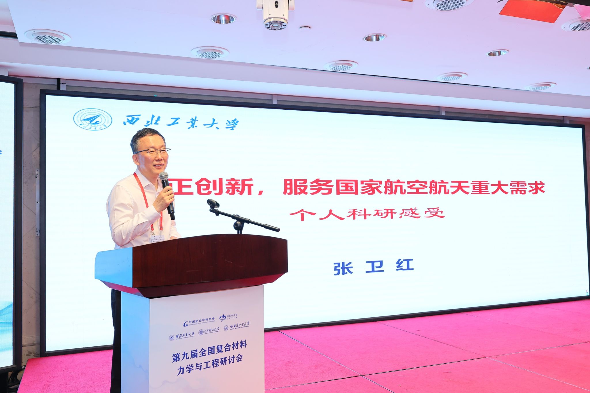 张卫红院士以《守正创新,服务国家航空航天重大需求——个人科研感受》为题作大会首场报告,强调复合材料作为航空航天等国家战略产业的核心支撑,其轻量化设计突破对航空发动机等重大装备自主创新具有战略意义,并深入解析力学性能突破与装备自主可控的内在关联,指明智能化设计与增材制造技术将引领下一代飞行器结构变革。