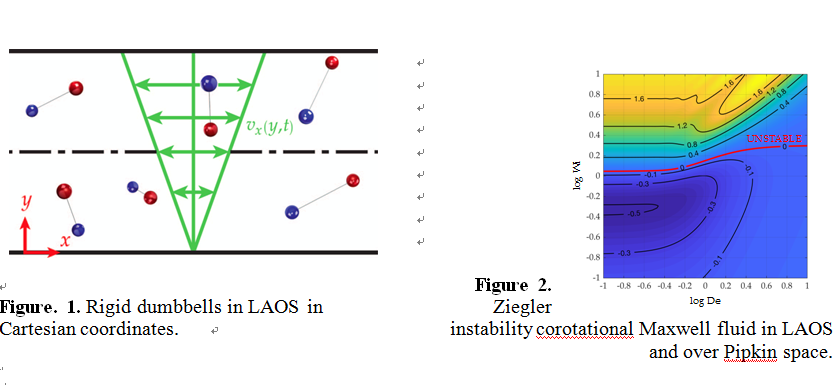 In the continuum framework, the Oldroyd 8-constant framework2is a versatile set of popular fluid models3. Moreover, when generalized to multimode fluid using the Spriggs relations, this fluid model can successfully predict nonlinear behaviour of polymeric liquids. Finally, the Oldroyd 8-constant framework yields exact solutions, for both shear stress and normal stress difference responses. Whereas these exact solutions give us general idea on how material reacts to nonlinear input, using them can be cumbersome. We can exploit these exact solutions to get simpler forms called Padé approximants. Under some circumstances, the best of these, for either the shear stress or the normal stress differences, gives the same level of accuracy as the exact expression. Lastly, we can also exploit these exact solutions for the thermodynamic analysis of flow stability to depict when LAOS is unstable (see Fig. 2).
