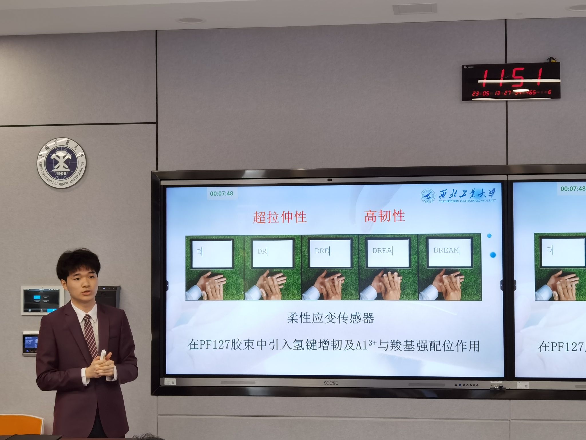 此次我院参展项目依托于2021年立项的国家级大创项目,针对目前难以开发的多功能导电弹性传感材料相关问题,项目组师生提出了基于多重物理作用交联和银纳米线增强结合的高强度导电纳米复合水凝胶,将传统水凝胶传感器的静拉伸强度、疲劳寿命和导电性能分别提高10倍、9.6倍以及1.2倍;且该材料兼具良好细胞相容性和体内生物相容性。该项研究成果使其具有良好导电性、高传感灵敏度和强机械性能,有望高效用于可穿戴智能设备领域。基于该项目,参与师生在科研方面也取得了相应成果,完成了具有广阔应用前景的柔性应变传感器的相关探索,发表SCI顶刊论文4篇。