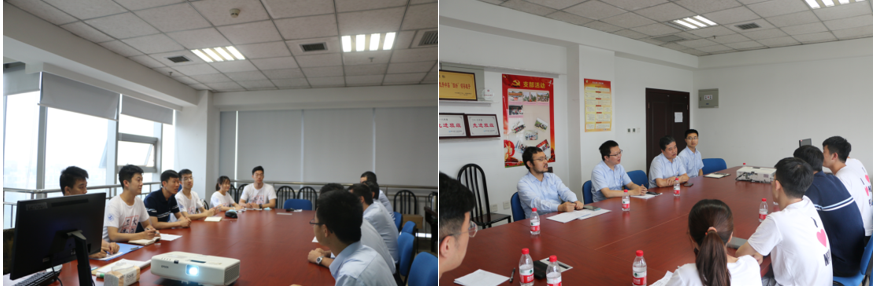 一飞院团委贯书记和人力资源部邓勇老师及3位一飞院的工程师们在会议室接待了实践队成员。邓老师首先对王斑老师和实践队成员来一飞院进行暑期实践表示欢迎。随后他谈到,社会实践是青年更好地了解企业文化,了解企业与校园之间差异的重要一环。因此,一飞院也欢迎更多的航空学子来访学习。
