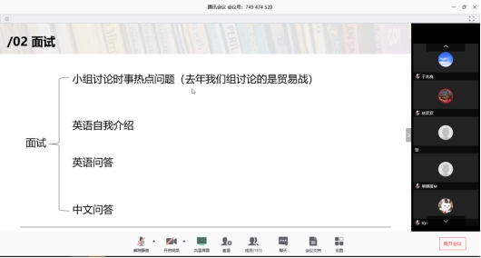 为了帮助我院大四同学在硕士研究生复试中取得好成绩,3月23日下午2:30-3:30,beats365官网组织召开了“2020年考研复试经验分享会”线上腾讯会议。会议邀请了4位优秀学长分享自己的复试经验,同时还邀请了学院党委副书记林欢欢老师帮助解答同学们提出的复试相关问题。参加会议的还有院长助理于兆良老师、秦琴老师,会议由大四辅导员刘斌老师主持。此次复试经验分享会吸引了152位同学参与。