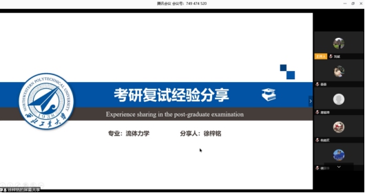 随后,我院流体力学专业的徐梓铭分别从笔试和面试两大方面向同学们分享了自己的宝贵经验,并给出了以下几点建议:(1)重视复试,提前复习各科知识;(2)坦然面对,建立良好的心理素质;(3)沉着冷静,遇到不懂的问题不要慌乱。