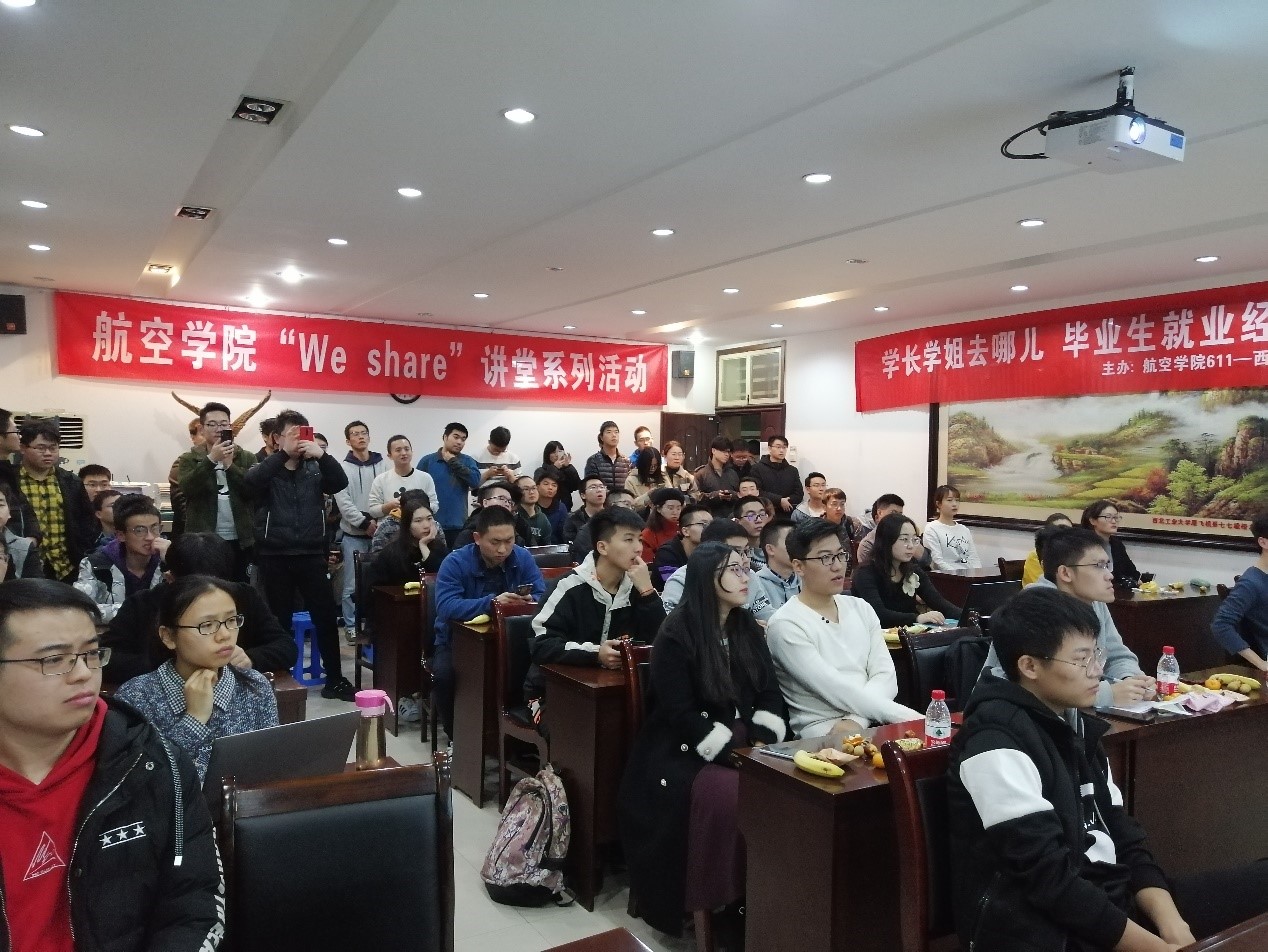 11月21日晚七点,“学长学姐去哪儿”毕业生就业经验交流分享会在航空楼A706成功举办。本次活动邀请了六位在就业方面有代表性的研三同学,分享自己在求职过程中的心得体会和宝贵经验。2018级、2019级研究生同学前往聆听,积极提问、热情互动,现场气氛活跃。
