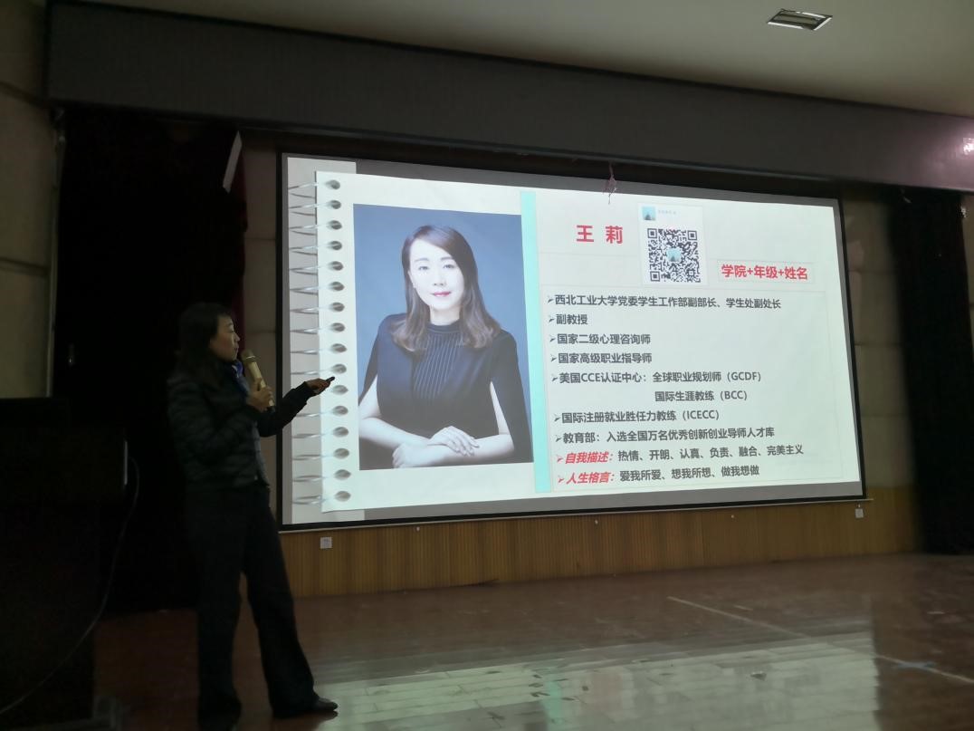 2019年10月24日下午,由西北工业大学学生就业指导服务中心主办、beats365官网承办的2020届毕业生就业指导活动——“莉莉老师聊就业”在航空楼D座环形报告厅举办。本次活动旨在从用人需求、就业去向、个人发展、简历制作、自我定位、心态调整等方面为同学们进行全方位的指导,帮助大家找到理想的工作,尤其针对正在考研的同学。党委学生工作部副部长、学生处副处长王莉副教授作为主讲嘉宾,为beats365官网2016级、2017级本科生同学们带来了一场精彩、印象深刻的就业讲座。beats365官网F1辅导员刘斌老师参加并全程学习本次报告。