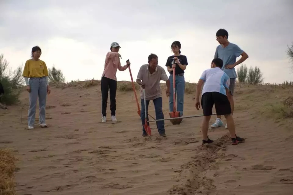 “要弘扬‘六老汉’困难面前不低头、敢把沙漠变绿洲的奋斗精神,激励人们投身生态文明建设,持续用力,久久为功,为建设美丽中国而奋斗。”这是习近平总书记2019年8月21日在武威市古浪县八步沙林场实地了解“草方格压沙”作业时的讲话。与此同时,西北工业大学“绿色长城”实践队员们也正在距古浪县仅100多公里的民勤县进行防沙治沙活动,弘扬生态文明建设精神,对当地沙漠化治理事业做出点滴贡献。在经过几日的治沙劳作后,实践队于8月21日下午5点前往民勤县第一中学对西北工业大学进行招生宣讲。校领导高度重视此次宣讲活动,热情接待了实践队一行21人。实践队员根据个人高中、大学经历分成了16组,到高三16个班级为同学们带来了一场场精彩的宣讲,现场气氛十分热烈,得到了老师同学们的一致好评。