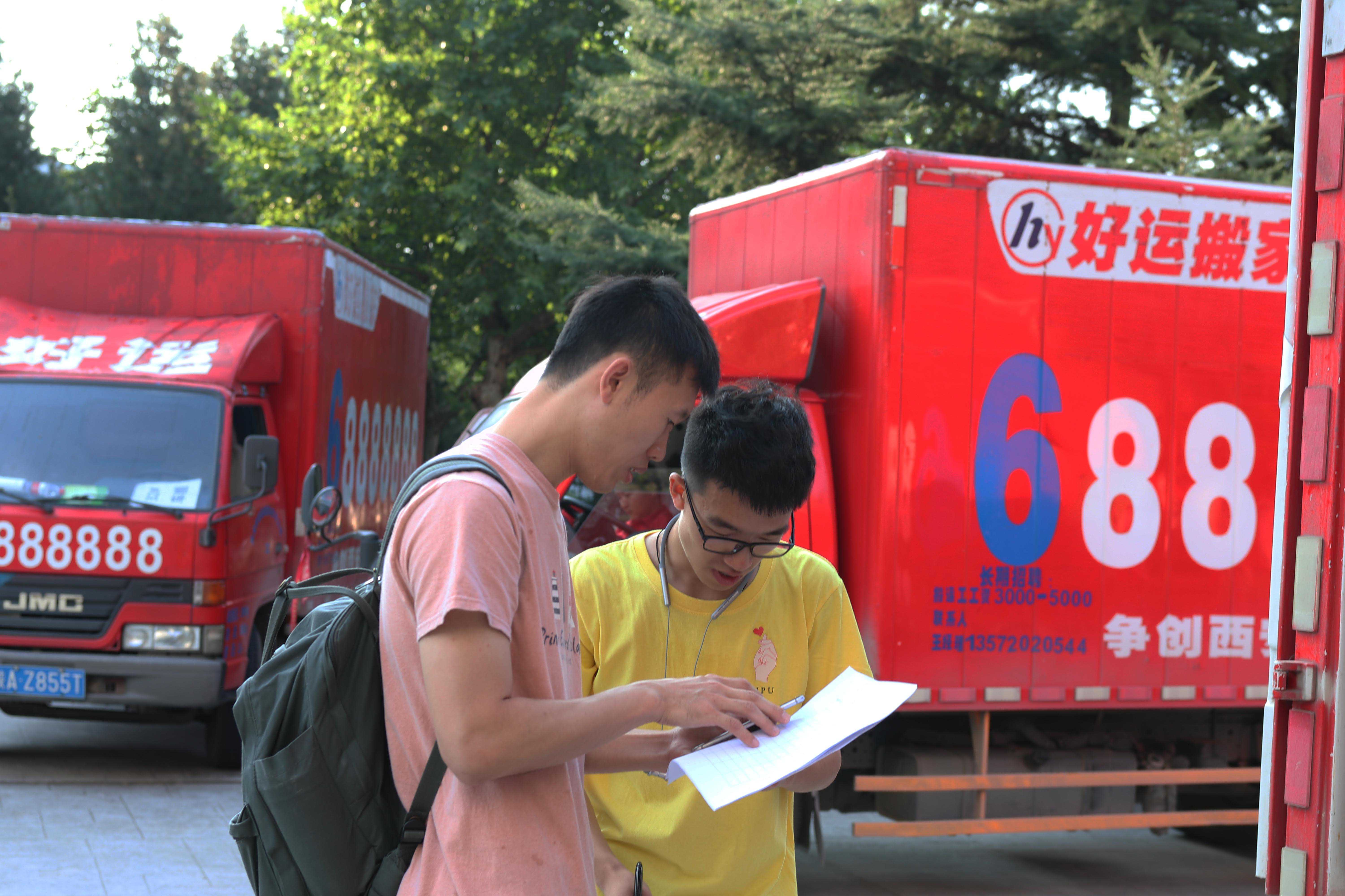 在长安校区,林欢欢老师与王斑老师带领组织17级的同学们核对物资、装运行李以及学生乘车,确保了搬迁工作有序进行。