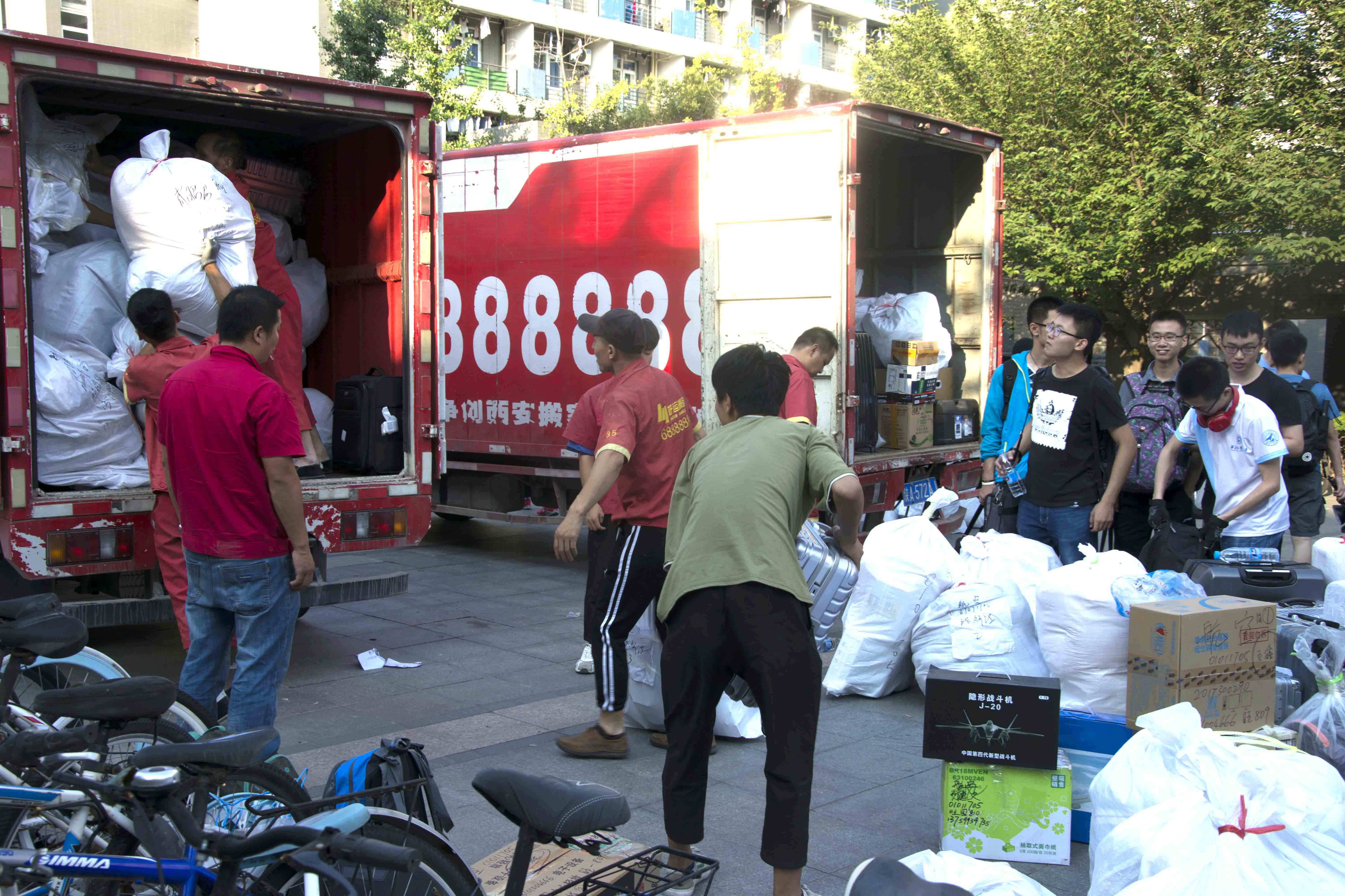 上午6时,在张明轩同学的带领下,搬迁工作从志愿者们搬运行李的脚步声中拉开帷幕。
