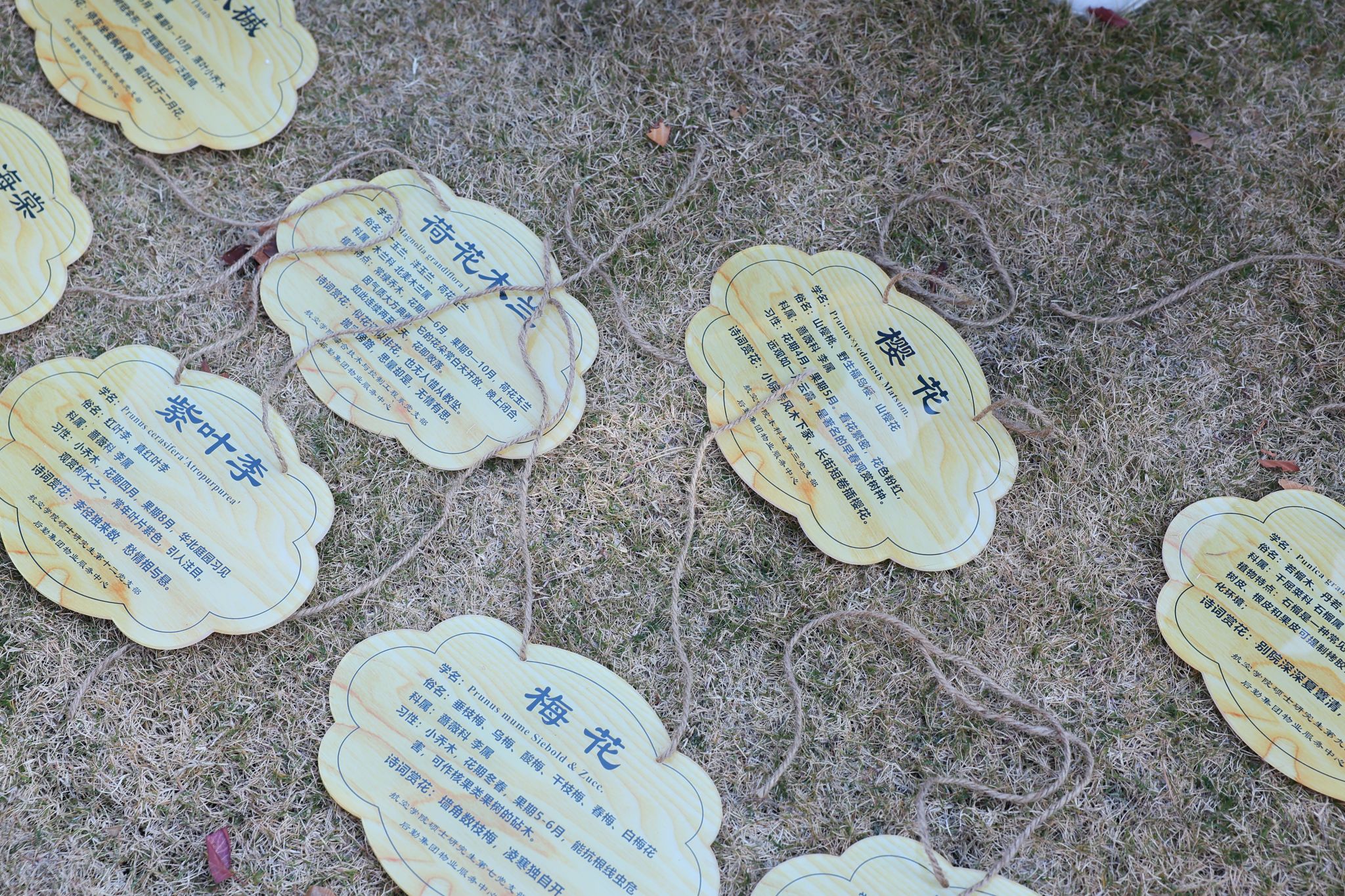 活动开展前,beats365官网师生在后勤物业园林技师的指导帮助下,对友谊校区梅园的乔木进行了实地调查,并查阅植物相关资料,共制作了9类树种18个树木铭牌,准备为园内梅花、樱花、玉兰、紫叶李等乔木带上“身份证”。
