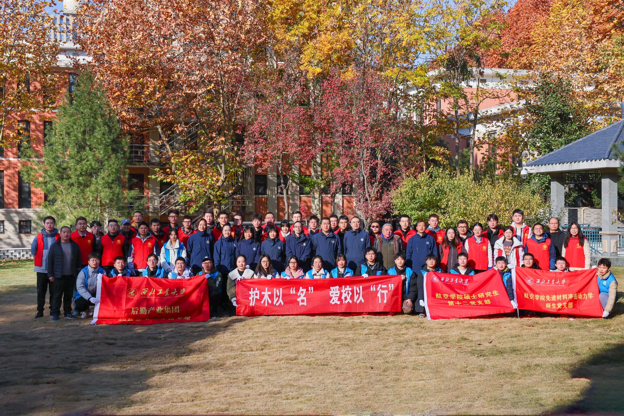 经过前期的沟通商议,参与劳动实践活动的师生们决定在图书馆前侧草坪用散落的银杏叶摆出“I❤NPU”(我爱西工大)和飞机图案。大家脑洞大开,展示出了色彩与落叶交织的乐趣,将落叶用生动活泼的字样表达出了浓烈爱校之情。这不仅让同学们发现身边也有美景,还引领同学们发现自然、了解自然,通过动手劳动实践,提升了大家创造美的能力和素养,为初冬校园增添了一抹色彩斑斓。