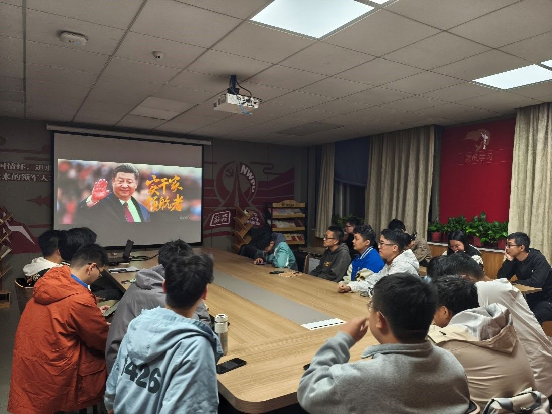 首先,党支部副书记何应龙播放关于中国发展历程中的重大事件的视频纪录片,共同回顾了新中国自成立以来在科技、经济等领域取得的伟大成就。纪录片鲜明体现了新中国成立以来在各领域的迅猛发展以及日益强大的综合国力,让到场党员深刻体会到了我国的强大力量。
