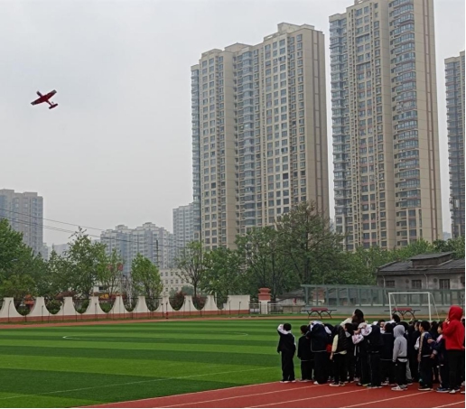 课程讲解之后,全体师生和志愿者共同来到空旷的操场,一场精彩绝伦的航模表演就地开始,孩子们的目光紧紧聚焦在飞翔在蓝天下的一架架飞机,待看到飞机所展现的高难度动作,如翻转,侧滚,更是欢呼雀跃起来,鼓掌声和兴奋的喊叫声淹没了整个操场,可以明显的感受到孩子们对于航模的喜爱。随着最后一架飞机平稳落地,航模表演终是落下了帷幕。返回教室之前,孩子们挥舞着小手对着飞机说再见,不舍之情流于稚嫩的脸庞。回到教室后,志愿者们和孩子们有一个短暂的告别仪式,最终在志愿者们的谆谆教诲和孩子们的憧憬眼眸中,结束了本次科普活动。临行前,孩子们的一句“谢谢老师,今天好开心呀。”宛如一股暖流淌进在场志愿者的心间。