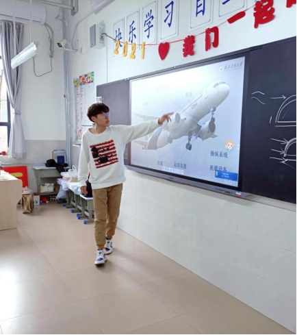 接着,志愿者们讲解了飞机的结构,将飞机比作人体,配合图片展示,生动形象地给孩子们介绍了飞机的组成结构,并引导孩子们对自己心中未来的航空器进行了描绘。