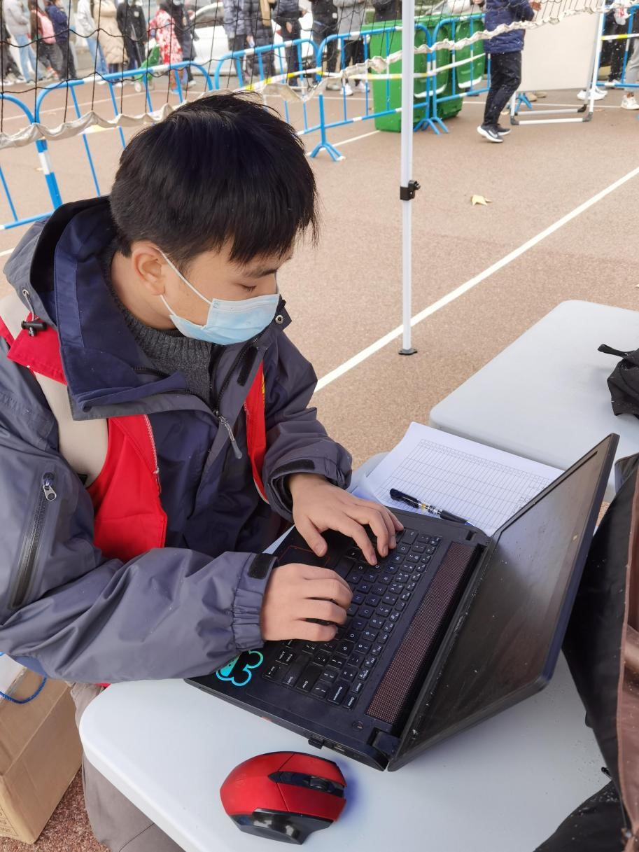 高李潇远 他说不想在这场疫情中做一个被保护的很好的人,他也想勇敢的保护他人。他报名参加了核酸检测统计信息的志愿者,在雪后寒冷的中午手捧笔记本电脑录入学生信息,服务两个多小时的他感觉还不过瘾,继续报名其他志愿者。(2019级硕士一支部党员)