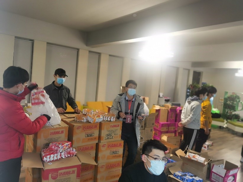 本科生党员、入党积极分子、普通学生疫情当前,他们为保障“宅宿”学生日常生活需求,张春林老师带领他们积极投身到云天苑C座战“疫”志愿服务中,为全楼1000余名同学进行发餐、组织核酸检测、发放物资物料等工作,在云天苑C座建立起了一道坚实的生活保障供应线。志愿者们为战“疫”贡献了力量、服务了同学,也感受到了这份志愿服务工作的光荣感与使命感。(本科生二支部入党积极分子于昊亮、本科生二支部党员黄文彬、01011802班刘心瀚、本科二支部入党积极分子蒋乐天、本科二支部党员王杰、本科二支部入党积极分子张宸文、01011802班邹艾君、本科生一支部郝宏炜、杨晨辉老师、张春林老师、本科二支部党员史子颉、01011807班曾浩哲、本科生五支部党员李春云、本科生一支部党员郭润杰、01011807班樊少华、本科生二支部党员张明轩)