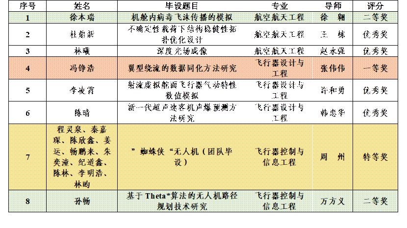 为提高参加交流会的毕业设计项目质量,学院由实验教学示范中心和教务部于5月12日组织进行了院内选拔评审,全国航空航天类专业教学指导委员副主任委员杨智春教授和院内经验丰富的毕业设计指导担任评委,采取现场答辩方式,最终推选了8项毕设参会,其中飞行器设计与工程专业3项,航空航天工程专业3项,飞行器控制与信息工程专业2项。