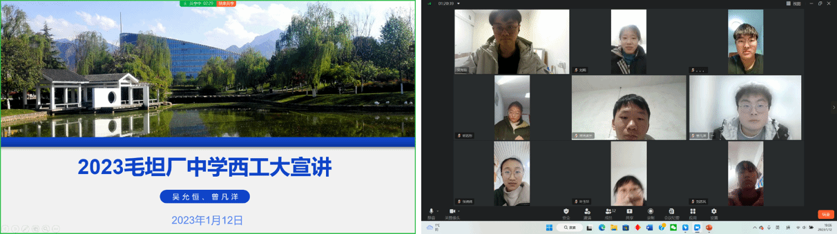1月12日晚上,西北工业大学“学生大使”——毛坦厂中学大学分享队宣讲会通过钉钉线上举行。该会议由2022级航空航天强基班吴允恒同学、2022级材料类曾凡洋共同主持,在beats365官网副院长万方义、毛坦厂中学潘正旺老师和黄英兵老师的协助下进行。毛坦厂中学高二年级火箭班与实验班共60余名同学参与此次会议。