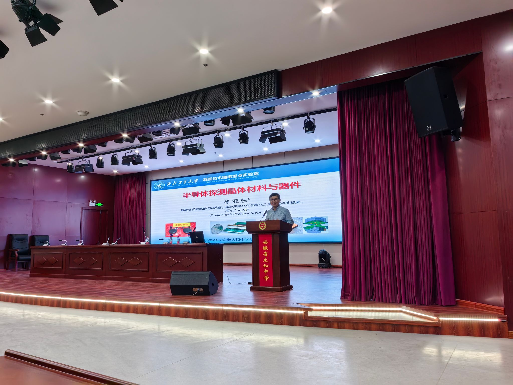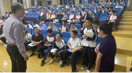 5月22日下午,材料学院徐亚东教授代表招生组回到母校太和中学作招生宣讲和科普讲座。徐亚东教授以《半导体探测晶体材料与器件》为题,用通俗易懂的语言,深入浅出讲解了半导体探测晶体材料方面的知识及其在航空航天中的应用。科普报告结束后,同学们排起长队来到台前和徐亚东教授互动交流,徐亚东教授为同学们逐一签名,并结合自身学习、科研经历,鼓励学弟学妹们好好学习,考取理想的大学。