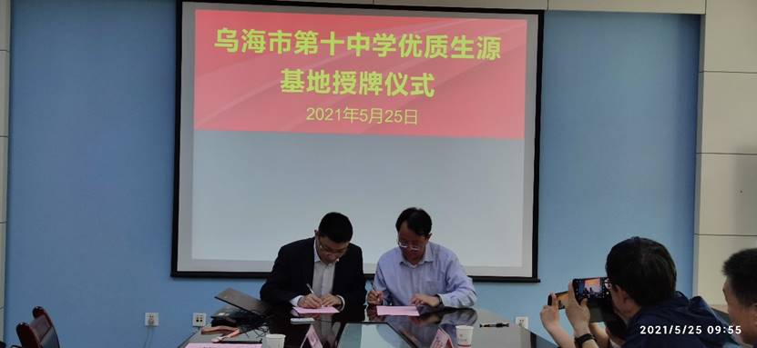 近日,乌海市教育局副局长肖西田、乌海十中党委书记、校长牛英、乌海一中党委副书记贾昕信等一行来我校调研交流,就生源培养输送、大学中学教育衔接等问题进行广泛交流,并隆重举行了与乌海市第十中学共建“优质生源基地”签约授牌仪式。