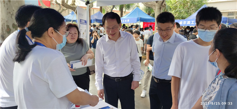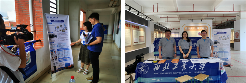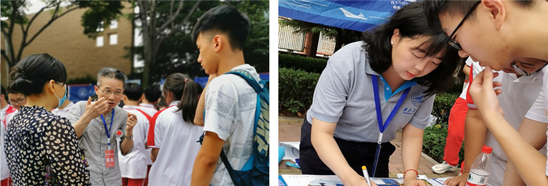 校园开放日暨高考咨询活动于6月25日在我校举行,学院共有12位师生参加了校园开放日咨询活动。一早大雨滂沱,咨询还未正式开始,校园里已经人头攒动,展位前挤满了前来咨询的考生和家长。学校、学院领导来到“黄玉珊航空班”展位和“航空航天大类”展位指导“黄玉珊航空班”和“航空航天大类”招生宣传活动。
