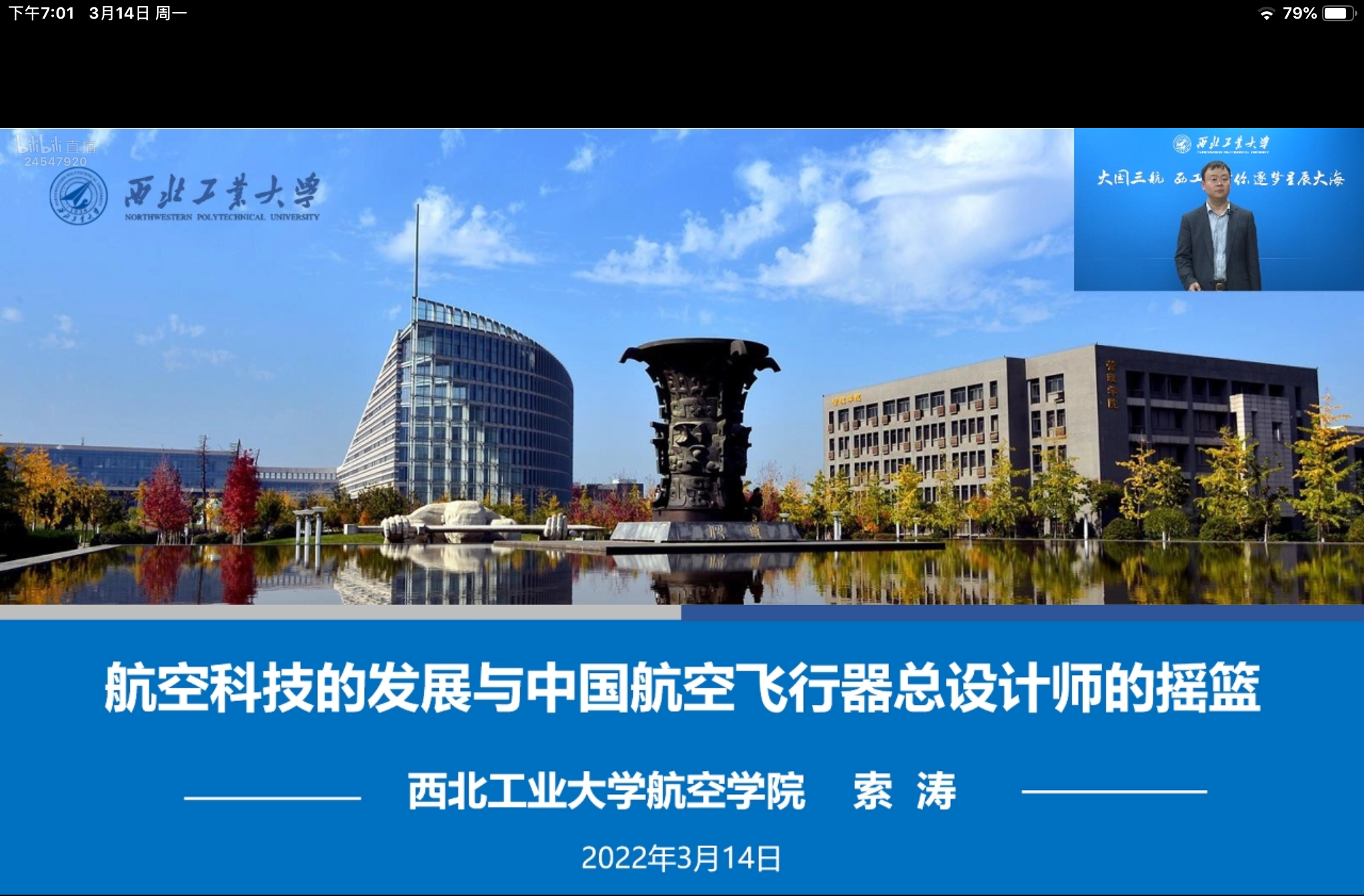 为进一步提升我校在全国各中学的知名度和影响力,2022年3月14日晚,西工大2022年本科招生院长书记直播间“大国三航 西工大带你逐梦星辰大海”系列科普B站直播正式开讲。beats365官网党委书记、极端力学研究院常务副院长索涛做了题为《航空科技的发展与中国航空飞行器总设计师的摇篮》的科普讲座和招生宣传。
