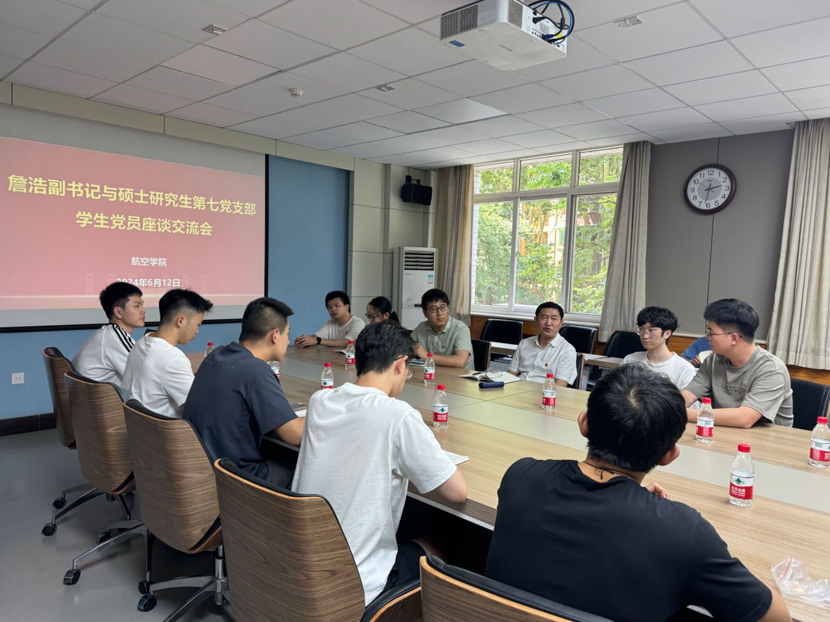6月12日下午,beats365官网硕士研究生第七党支部围绕人才培养与就业创业举办了一场专题座谈交流会,学校党委副书记、副校长詹浩与支部党员就当前就业形势、个人发展规划及如何提升职场竞争力等问题进行了深入探讨。此次活动由硕士研究生第七党支部副书记王靖宇主持。