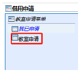 1. 申请人在“翱翔门户”点击“教务系统”,选择“公共服务”功能模块,选择“教室借用”,点击“教室申请”,根据系统提示填写《教室借用申请表》。如图1至图3所示。