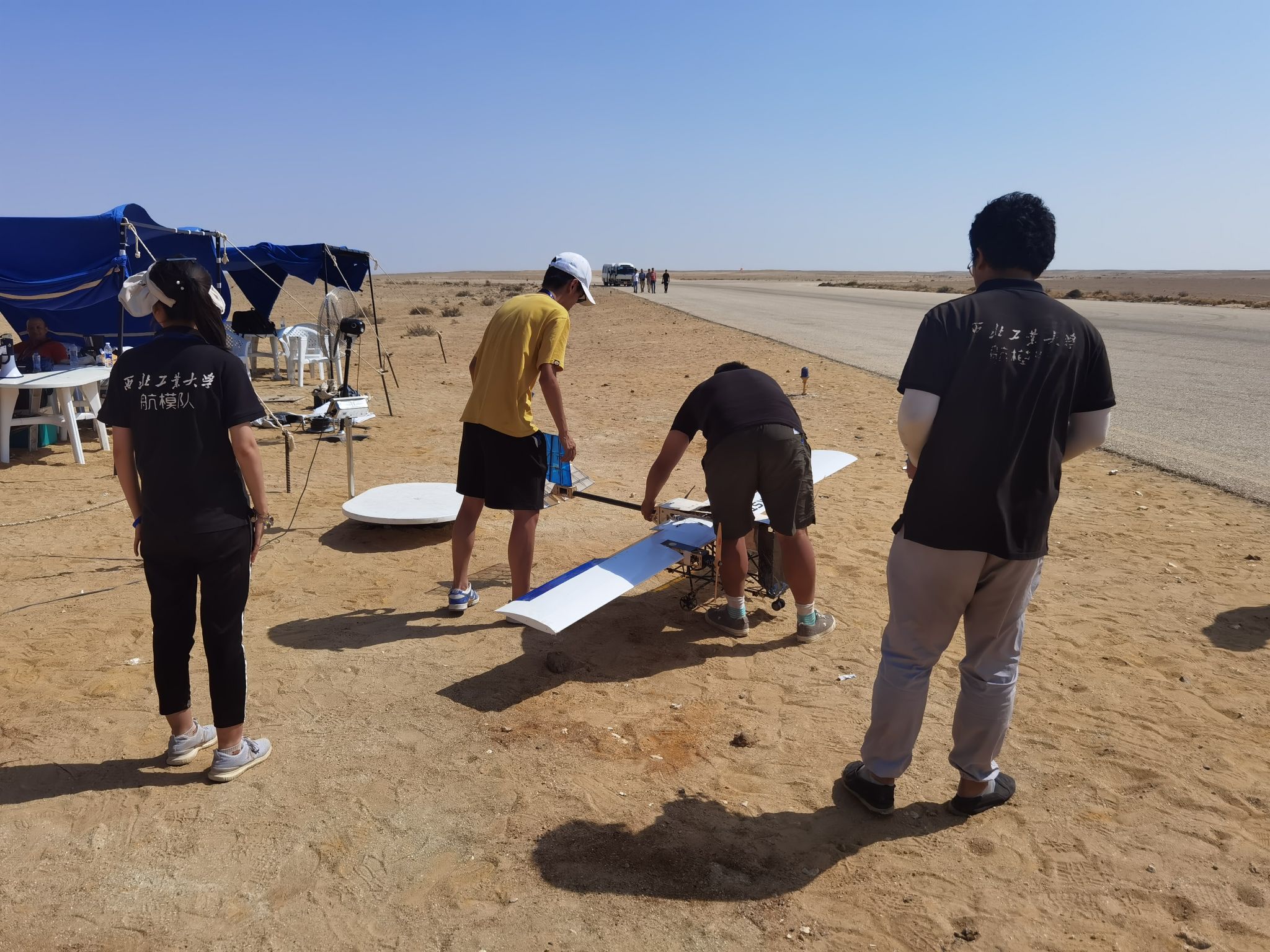 The two teams overcame obstacles all the way, and through multiple report reviews, reliability reviews, environmental pollution assessment tests, FRR videos, and final safety reviews, they finally entered the field mission flight decisive stage. The high temperature and strong wind in the Sahara made the flight more difficult. The team members withstood the heat and sand, carefully debugged the equipment, and in the strong wind, the two planes successfully took off independently, accurately identified the target and struck accurately. Due to the instability of strong winds, the landing gear of the plane was damaged during landing. The team members rushed to repair it overnight, sacrificing their sleep time. In the competition, in order to race against the clock, they leaned on the hot runway to repair the plane. It was this unremitting effort that successfully completed the arduous three-day task.
