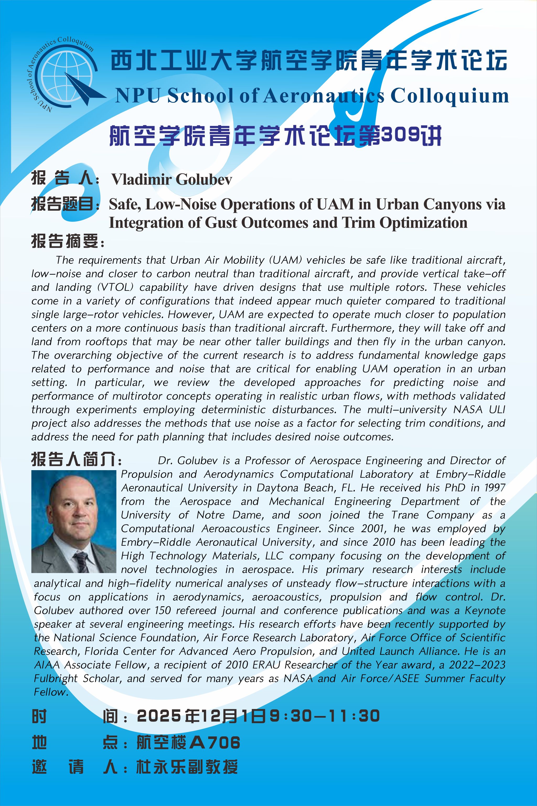 School of Aeronautics Colloquium No 309- Prof. Vadimir Golubev, Embry-Riddle Aeronautical University, Daytona Beach