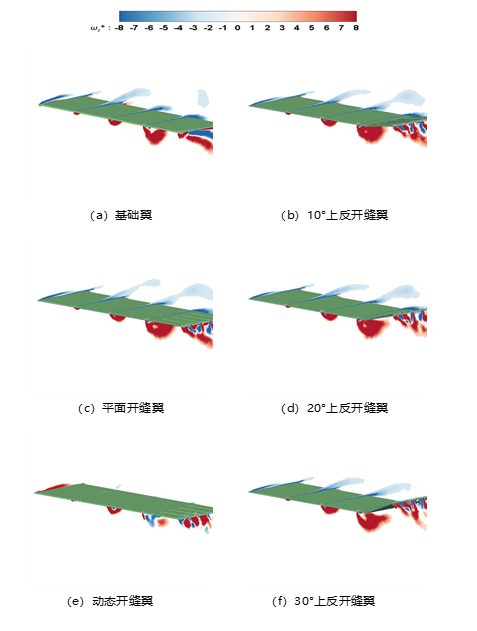 (2)从多个角度分析了滑翔和扑动状态下的翼梢开缝结构对于涡流演化过程的影响,发现翼梢的非平面性和相对运动能够使翼尖涡更加“破碎化”,使翼尖涡更加分散且更快耗散而减小了诱导阻力。
