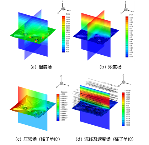(3)考虑到高温情况下可能出现的烧蚀问题,提出了一种基于体积分数的方法,并与LBM耦合来求解碳/碳热防护结构烧蚀、导热、界面变化及传质过程。