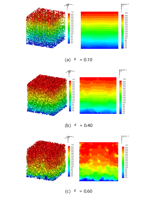 (2)考虑了具体孔隙分布对于碳/碳热防护结构的影响,对LBM-FVM方法进行改进,将LBM-FVM方法运用于辐射参与性介质和辐射非参与性介质混合的结构进行求解。