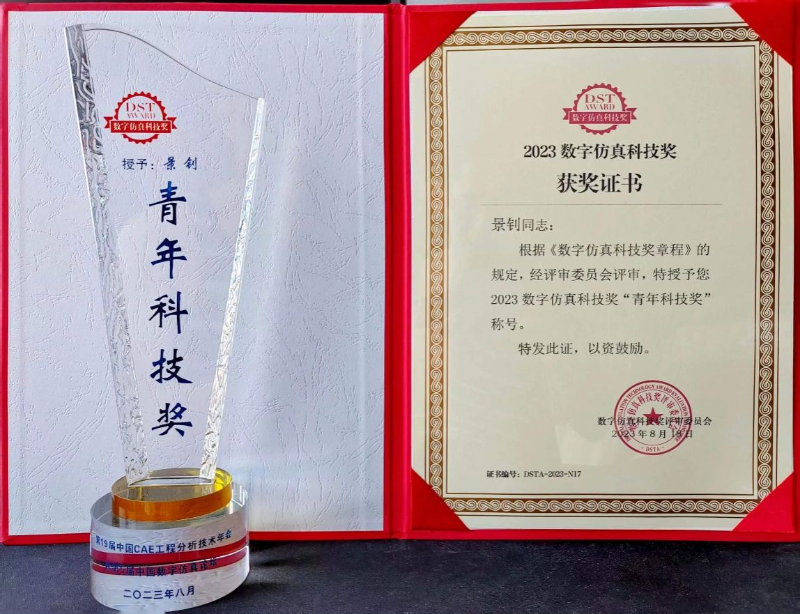 2023年8月18日-20日,第19届中国CAE工程分析技术年会暨第5届中国数字仿真论坛在福建厦门成功举办,beats365官网景钊老师荣获2023年度中国数字仿真科技奖“青年科技奖”。会议期间,景钊应邀作题为“基于结构全域变刚度的新型离散能量数值求解方法”的学术报告。