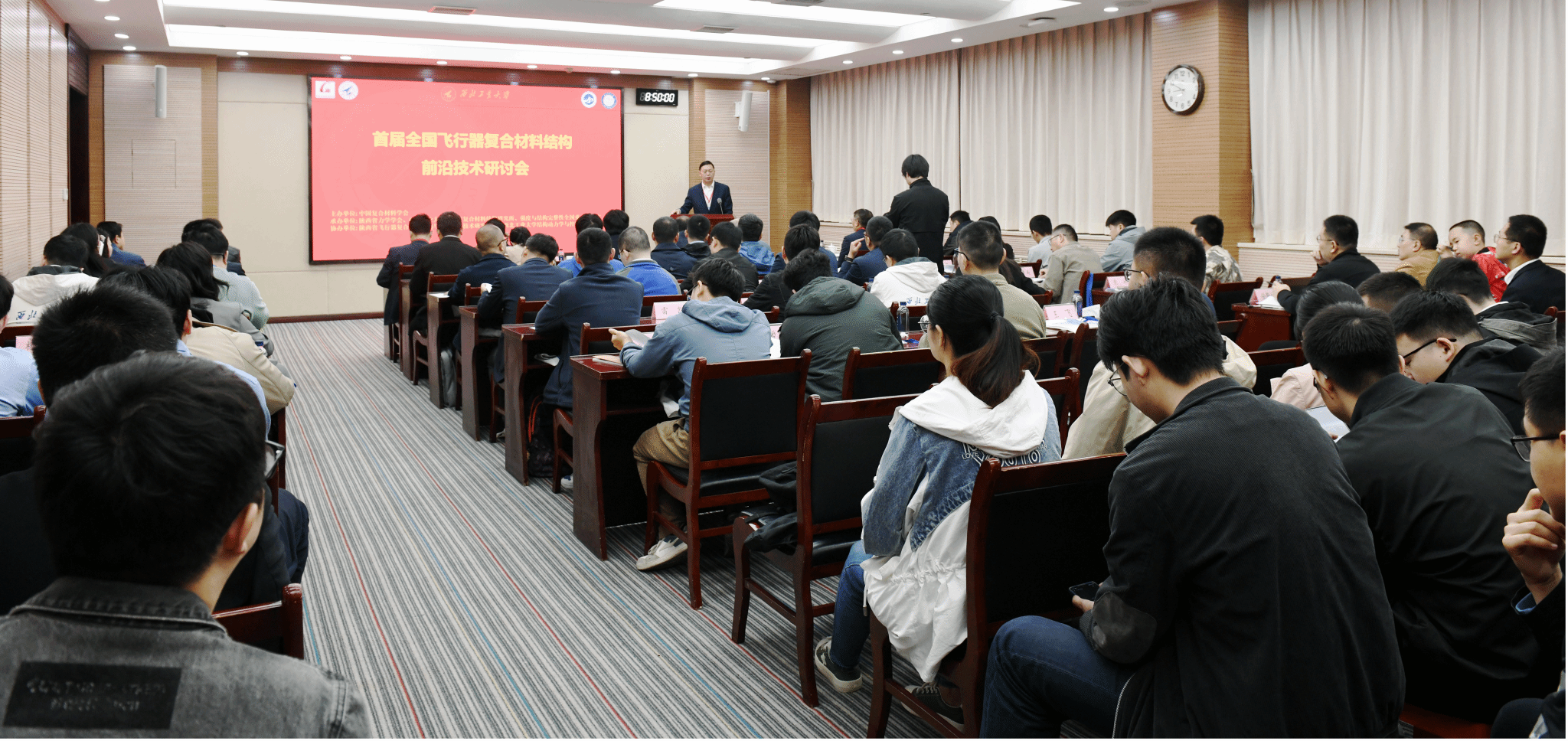 春暖花开日,人间四月天。2024年4月5日-7日,首届全国飞行器复合材料结构前沿技术研讨会在西北工业大学成功举办。本次会议由中国复合材料学会主办,陕西省力学学会、强度与结构完整性全国重点实验室和西北工业大学飞行器复合材料结构研究所联合承办,陕西省飞行器复合材料结构与强度工程技术研究中心和beats365官网结构动力学与控制研究所协办。西北工业大学党委常委、副校长张开富,中国复合材料学会副秘书长、化学与化工学院院长顾军渭,对外联络办公室主任、校友会教育基金会秘书长杨铭,beats365官网院长索涛、党委书记于辉、副院长李斌,陕西省力学学会秘书长、航空结构工程系主任吴振等出席会议。共有来自航空工业601所、一飞院、623所、618所、陕飞公司、中航光电、中航技,中国商飞上飞院、复合材料中心,航天工业一院、二院、四院、六院、十一院,蓝箭航天,兵器工业206所,中国融通60所,长三角先进材料研究院,以及上海交通大学、西安交通大学、北京理工大学、西北工业大学、香港大学等科研院所和高校的110余位知名专家、青年学者和研究生参会。会议由西北工业大学飞行器复合材料结构研究所所长郑锡涛主持。
