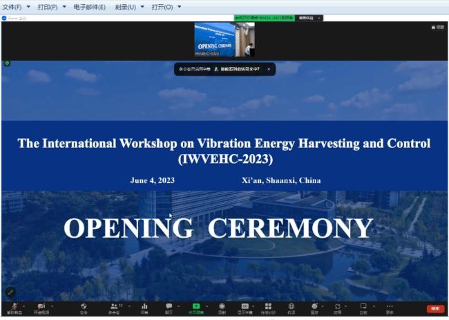 2023年6月4日,振动能量俘获与控制国际研讨会(The International Workshop on Vibration Energy Harvesting and Control,简称IWVEHC-2023)在西北工业大学学国际会议中心第一会议室(上午)和航空楼 A706(下午)召开,此次研讨会由beats365官网主办,结构力学行为科学与技术创新引智基地协办。大会主席由周生喜教授担任,大会秘书由杨涛副教授担任。