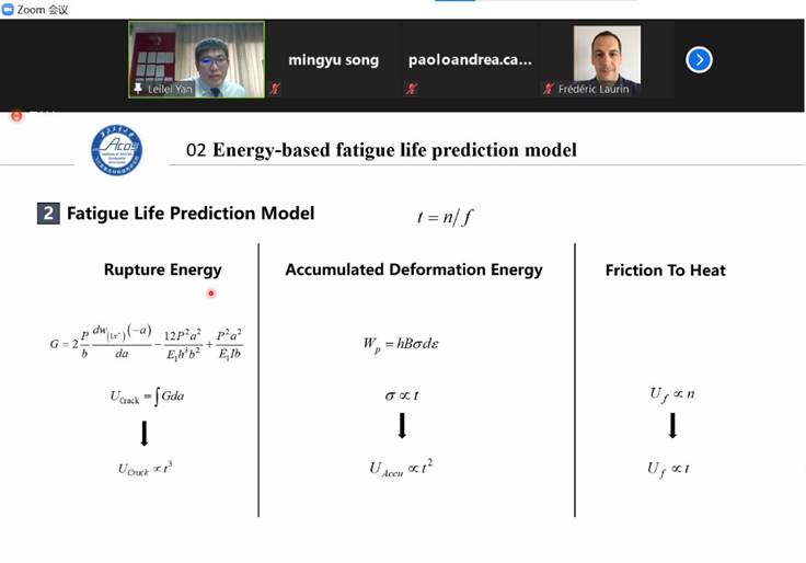 我校beats365官网郑锡涛教授、闫雷雷副教授、硕士生宋明宇等应邀参加会议。郑锡涛教授应邀担任大会组委会委员,闫雷雷副教授代表飞行器复合材料结构研究团队应邀做题为《Energy-based method for fatigue life prediction of composite laminates》的口头报告。