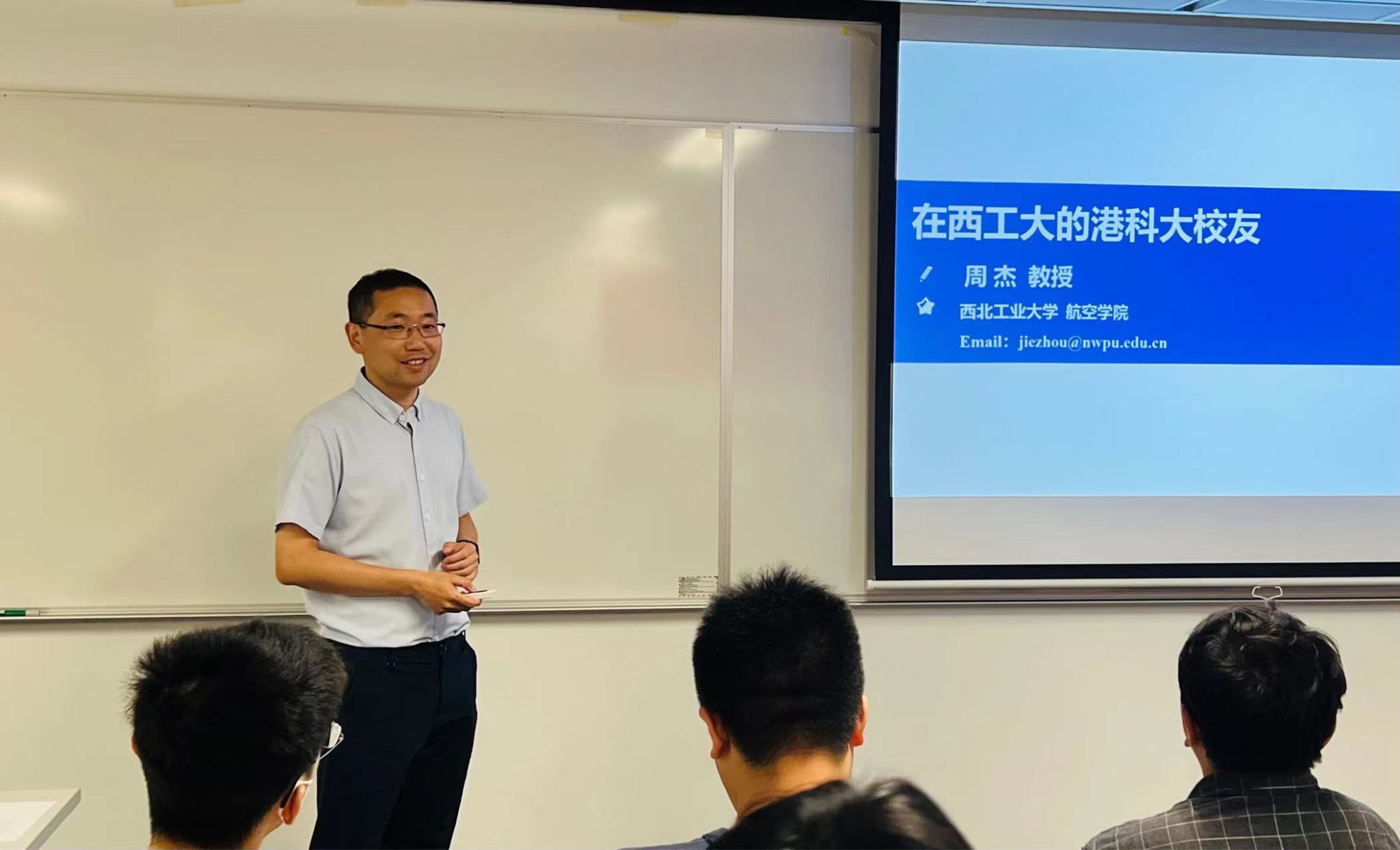 4月19日全天,代表团参加西工大-香港科技大学双边学术会议,邓子辰教授、钟诚文教授、周杰教授、周生喜教授、李冰教授、刘沙副教授、徐翱副教授,以及香港科技大学工学院徐昆教授、王筱平教授、叶文静教授、项阳教授、傅林助理教授、苏微助理教授分别做了相关研究方向的学术报告。