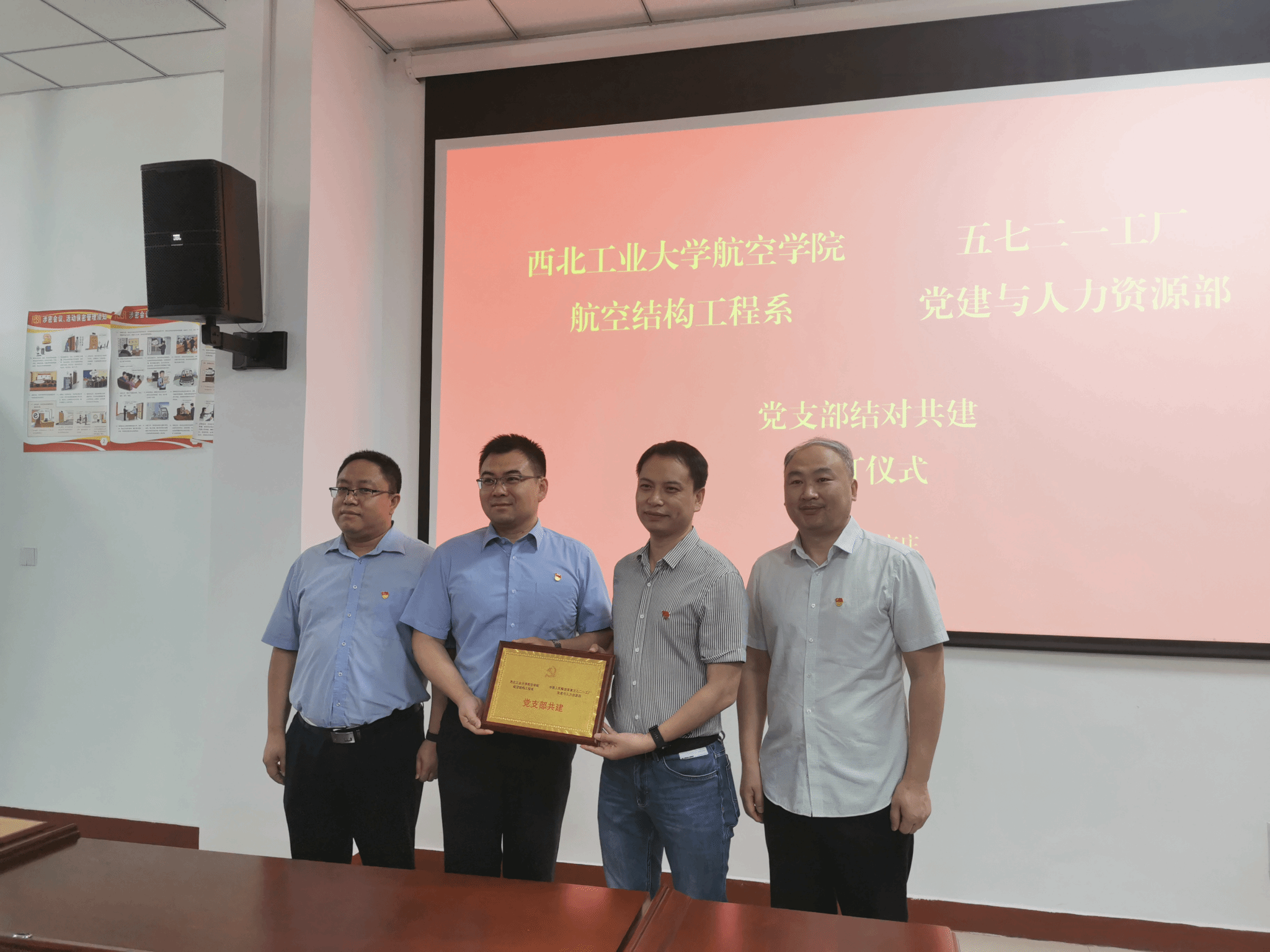 5721厂党委委员、副厂长李芹涛,型号总师、技术中心常务副主任崔展博,型号总师、技术中心党支部书记裴有志,发展规划部主任尹万兵,党建与人力资源部党支部书记史玉航、副主任白云鹏,团委书记贾磊,科技管理处副处长陈志明,修理车间主任党总支书记李婷婷,以及5721厂的若干技术骨干;航空结构工程系党支部书记郭亚洲、系主任吴振、副书记周杰、组织委员张霜银、宣传委员徐艳龙及航空结构工程系的王生楠教授、郑锡涛教授、贺尔铭教授、马玉娥教授等21名教师参加了此次共建活动。