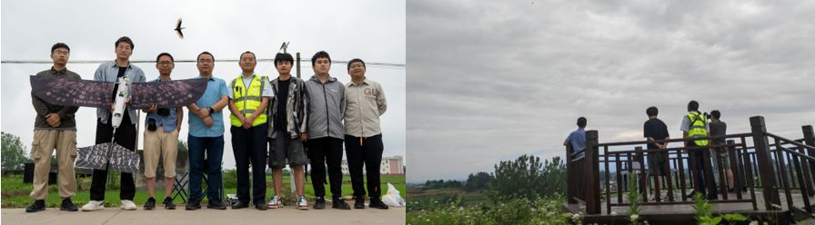 实践团队在汉中机场以及机场周围开展了仿生扑翼飞行器实际驱鸟效果测试,机场驱鸟队相关工作人一同参与了测试。汉中机场周边分布有大量的水稻田和森林,生态环境非常适合鸟类生存,鸟类品种繁多数量庞大,尤其生活着国家一级保护动物朱鹮,为机场驱鸟工作带来了极大的挑战。团队利用仿生扑翼飞行器的外形涂装效果以及安装驱鸟音频设备,对机场内以及机场附近的鸟类进行了驱鸟测试,同时利用飞行器携带的图像采集设备对机场附近鸟类的数量和种类进行观测纪录。实际测试结果表明团队研制的仿生扑翼飞行器通过涂装和加装鸟类声音播放装置,能够对机场附近的多数鸟类实现生理恐吓和驱赶。汉中机场机场副总瞿学建对实践团队这次驱鸟工作和效果给予了高度肯定和评价,希望双方能够加强交流与合作,将仿生飞行器生态驱鸟新模式尽快落实到机场实际工作中。