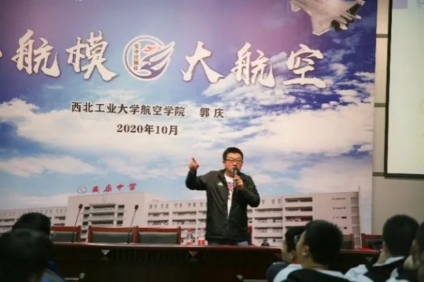 2021年6月,郭队在海南省北京师范大学万宁中学开展科普知识讲座并带队进行航模表演,现场千余名同学对我校的各学科发展产生浓厚的兴趣,多名同学与我校航模队员互动交流,互留联系方式,为同学们埋下一颗航空报国和报考西工大的的种子。在内蒙古自治区包头一机一中、陕西安康中学、西飞一中和澄城中学的讲座中,利用小模型与同学们现场互动,并通过设计制作活动和开展竞赛对我校进行全面宣传,力争吸引更多的优秀学子报考西工大,为更好支撑学校“双一流”建设贡献一份力量。